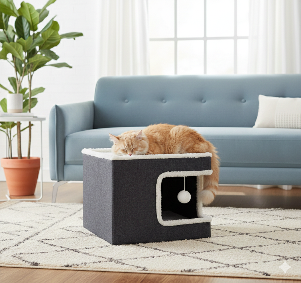 More than just a cat house, Cloud Haven™ is a personal haven — a place to nap, scratch, hide, and play. Whether placed in your living room, bedroom, or favorite corner of the home, it quickly becomes your cat’s go-to comfort zone.